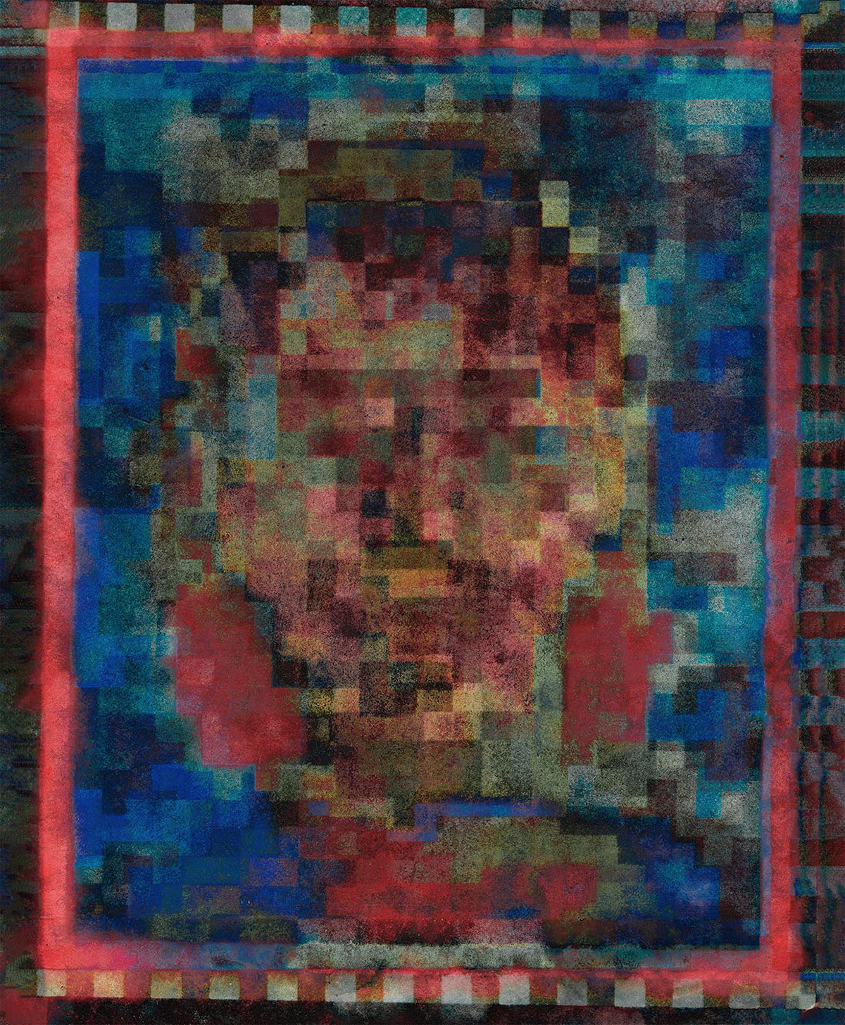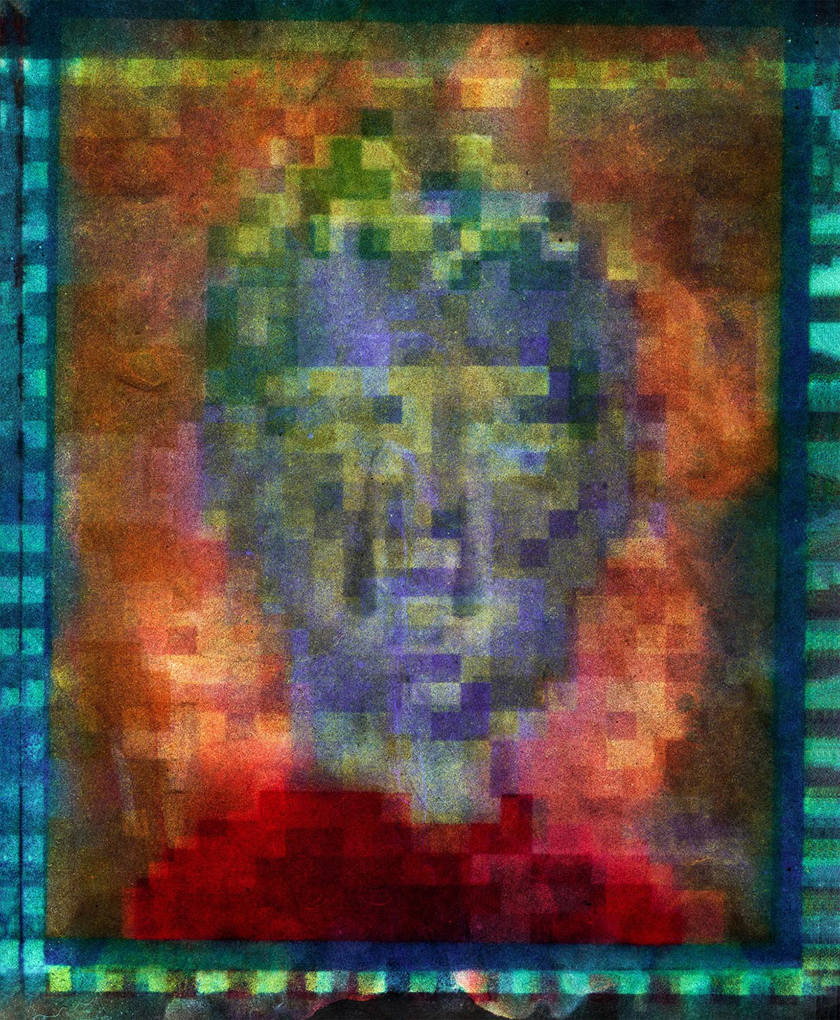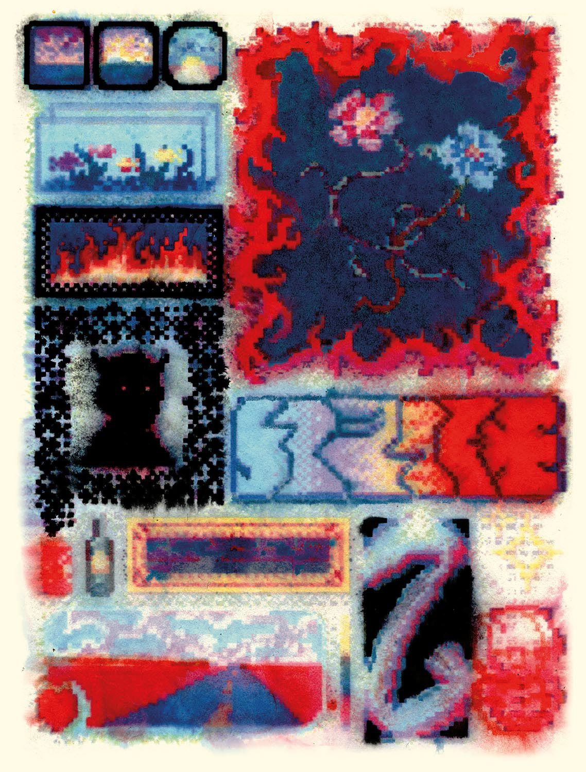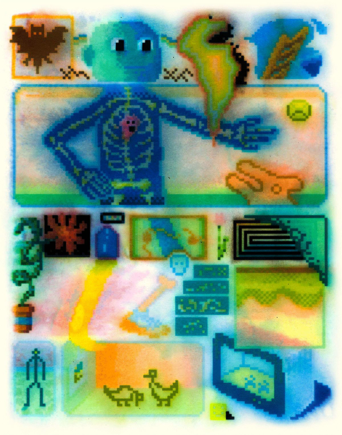 In this series, I focused primarily on the search for painterly pixel values and the transformation of the impressions characteristic of the screen into a material object in the form of a print on paper. The themes are based on the language of digital culture. Old computer games, pixel art, and the LoFi theme (low accuracy) inspired me to create the composition. The process of creating the works is a combination of digital processing and manual dissolving of the print with water. Experimenting with this technique is another reason for creating this series. Thanks to the physical interference with the paper, the image from the world of screens becomes less ideal and more human. By printing the composition on paper, it can be experienced on a physically perceptible surface.